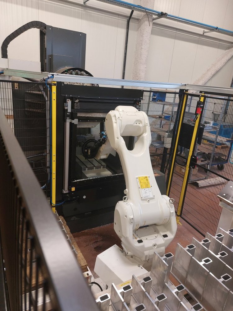 Un centre d'usinage 4 axes alimenté par un bras robotisé permet de réaliser tous types de pièces et accessoires à partir de profilés en aluminium.